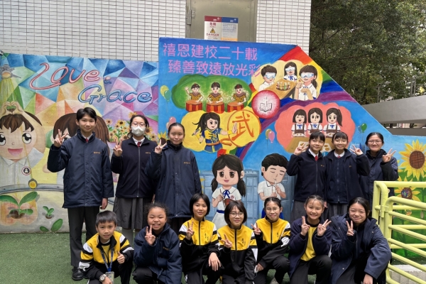 禧恩小學二十載 天天笑聲多歡暢 上帝教導隨心載 叫你我展翅 暢遊星海