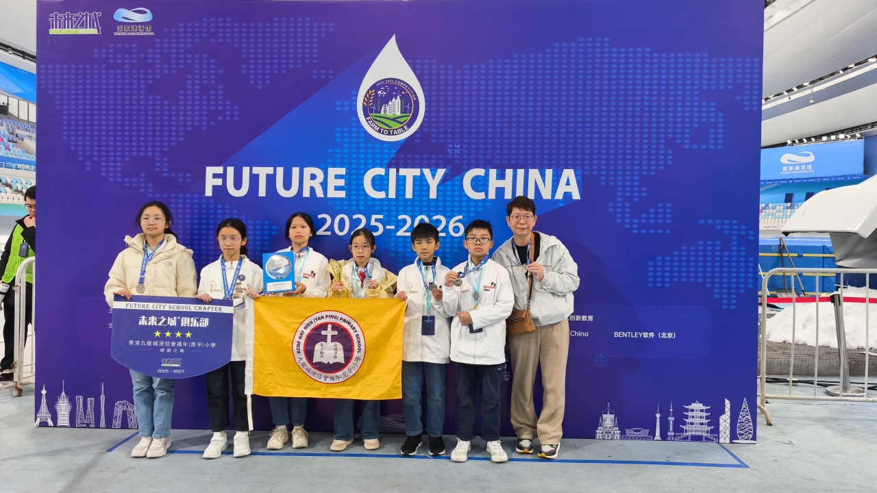 繼去年代表香港出賽並取得優異成績後,本校學生團隊今年再度憑藉卓越實力蟬聯香港區代表資格,遠赴北京參加 2025-2026 年度「未來之城」全國總決賽。在激烈的競逐中,團隊表現更上一層樓,不僅成功躋身全國前八名,更榮獲最高榮譽「特等獎」及「最佳同伴互評獎」。連續兩年代表香港征戰全國賽並屢獲大獎,充分展現了本校學生在 STEM 創意與解難能力上的持續突破與傳承