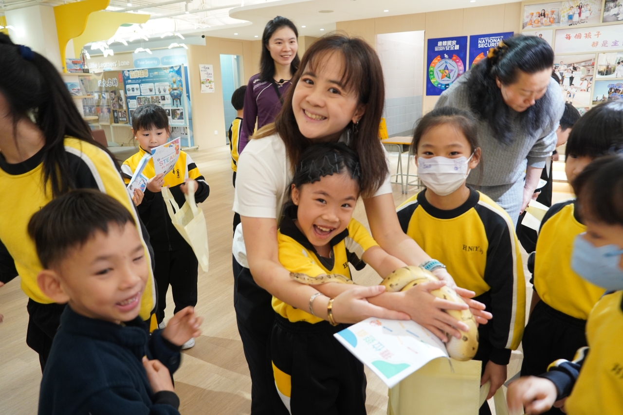 配合「深海」主題,生態保育區的「海地奇兵」大受歡迎,同學透過親手觸摸海星、海參及海葵,近距離探索海洋生物的奧秘。此外,校園內更設有奇珍異獸及兩棲類觀察區,讓學生與球蟒、守宮及蝾螈接觸,實踐生態保育意識。
