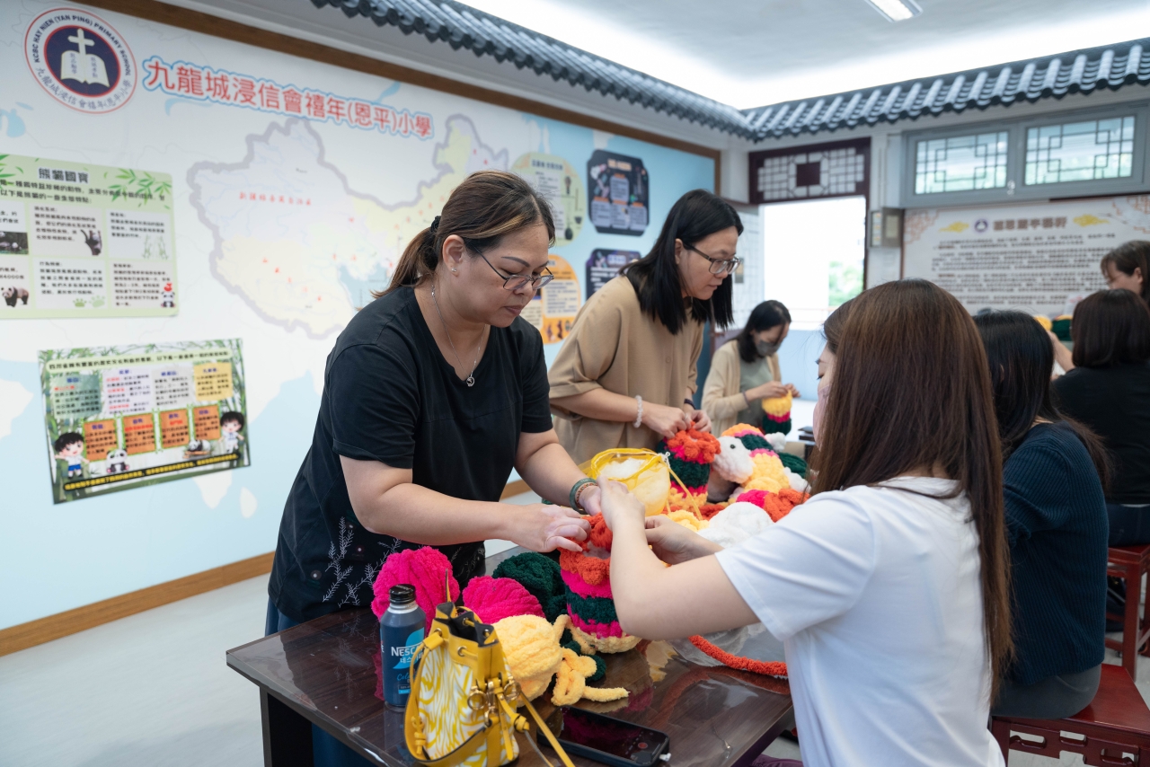 校長、老師與家長一同透過簡單易學的手指鈎織技巧,製作出獨一無二的兔子燈籠。不但富有節日氣氛,更能與孩子一同動手創作,留下溫馨又難忘的親子時光!