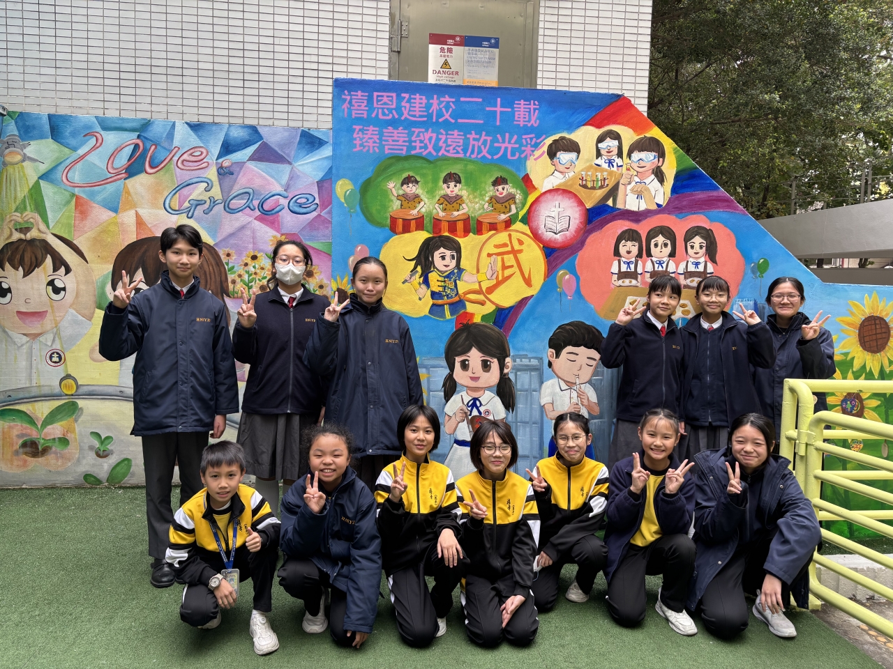 禧恩小學二十載 天天笑聲多歡暢 同你結伴成就美 滿心歡喜 齊共我sing
