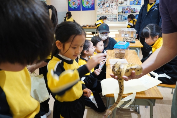 配合「深海」主題,生態保育區的「海地奇兵」大受歡迎,同學透過親手觸摸海星、海參及海葵,近距離探索海洋生物的奧秘。此外,校園內更設有奇珍異獸及兩棲類觀察區,讓學生與球蟒、守宮及蝾螈接觸,實踐生態保育意識。