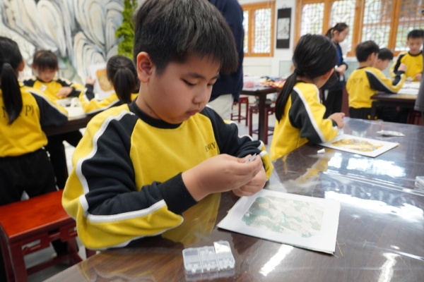 AI 科技引領未來探索 ,科技與藝術體驗同樣精彩,學生親自操作 AI 遙控車、體驗 VR 節奏大師及參與足球機器人比賽,感受前沿科技的樂趣。各級同學亦投入專屬工作坊:學校特別引入多項非物質文化遺產(非遺)螺鈿飾品、琺瑯工藝及宋錦珍珠畫。更讓學生在動手實踐中,深刻體會傳統匠心與工藝之美,實現科技與人文教育的完美結合。